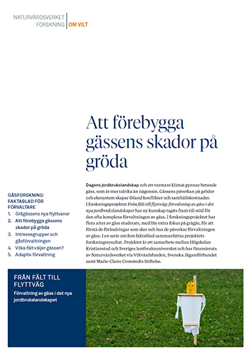 Dagens jordbrukslandskap och ett varmare klimat gynnar betande gäss, som är mer talrika än någonsin. Gässens påverkan på grödor och ekosystem skapar ibland konflikter och samhällskostnader. I forskningsprojektet Från fält till flyttväg: förvaltning av gäss i det nya jordbrukslandskapet har ny kunskap tagits fram till stöd för den ofta komplexa förvaltningen av gäss. I en serie om fem faktablad sammanfattas projektets forskningsresultat.