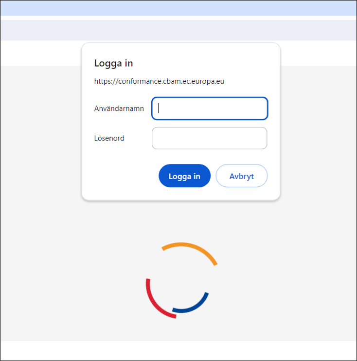 Inloggning till övergångsregistret görs via din inloggning till Tullverkets system. Säkerställ att du fått behörighet till CBAM-systemet i Tullverkets e-tjänster. Det räcker inte att ha inloggning i Tullverkets system, du måste också aktivera en särskild behörighet till CBAM-systemet. Se Tullverkets vägledning och kontakta dem om du behöver hjälp. I Tullverkets vägledning finns även mer information om hur du får behörighet till övergångsregistret.